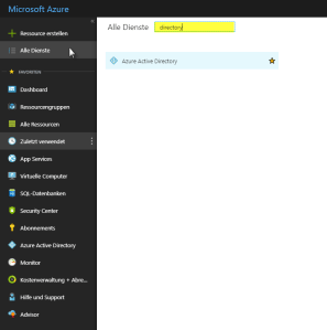 - Select “All Items” in the navigation bar on the left-hand side, search for “directory” and then select “Azure Active Directory” out of the search results