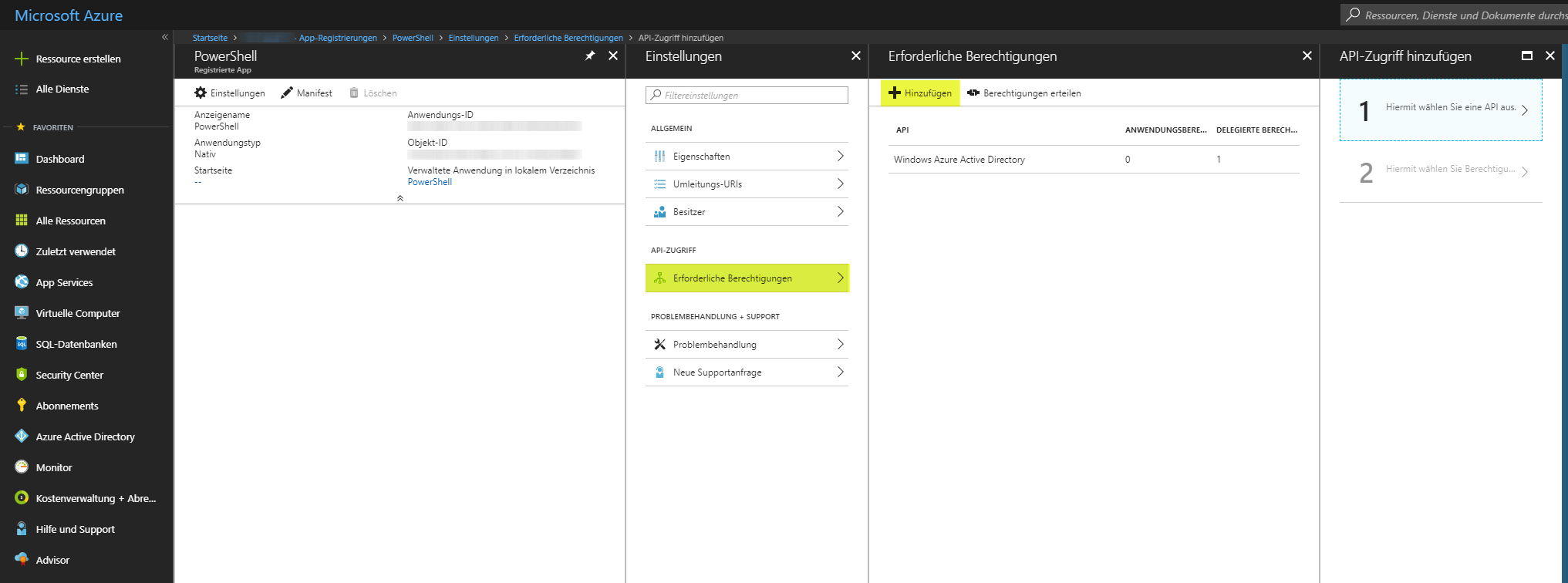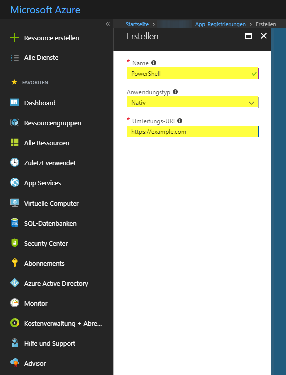 I decided to invoke the REST calls with PowerShell as it’s a simple and easily reproducible way to do so. First of all, I took care about authentication. To use the Office 365/Exchange 2016 REST API you need to use OAuth2 authentication. Instead of including username and password as a header in each request like in Basic Authentication, an OAuth2 token will be sent in the headers of each request to the server. The OAuth2 token expires after an hour. To avoid expiration, the token can be renewed using a refresh token. To acquire such an OAuth2 token you first have to register an application in Azure AD.