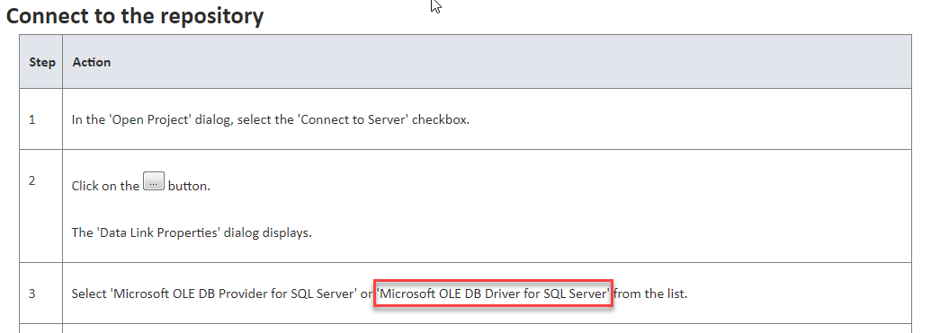 Next we tried to use the provider SQL Server Native Client 11.0. Unfortunately this provider is not supported by Enterprise Architect. After a few hours we finally found a solution. In the documentation another provider is mentioned which did not show up in the Providers tab.