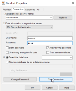 Before the project transfer can be started the transfer type (in my case DBMS to DBMS), the source and the target project have to be specified. As provider I selected Microsoft OLE DB Provider for SQL Server. As a part of the connection setup a database has to be selected. The list of available databases gets loaded using the values entered in the wizard. During lookup of the databases the following exception was thrown.